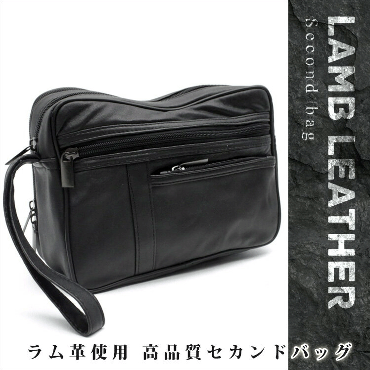 【即納】一部ラム革使用 高品質 セカンドバッグ SGG-05 ラム革 Wファスナー正面ポケット シンプル セカンドバック セカンド バッグ バック クラッチバッグ メンズ 紳士 ラム革 シンプル 羊革 ラム革 ブラック あす楽 通販 プレゼント