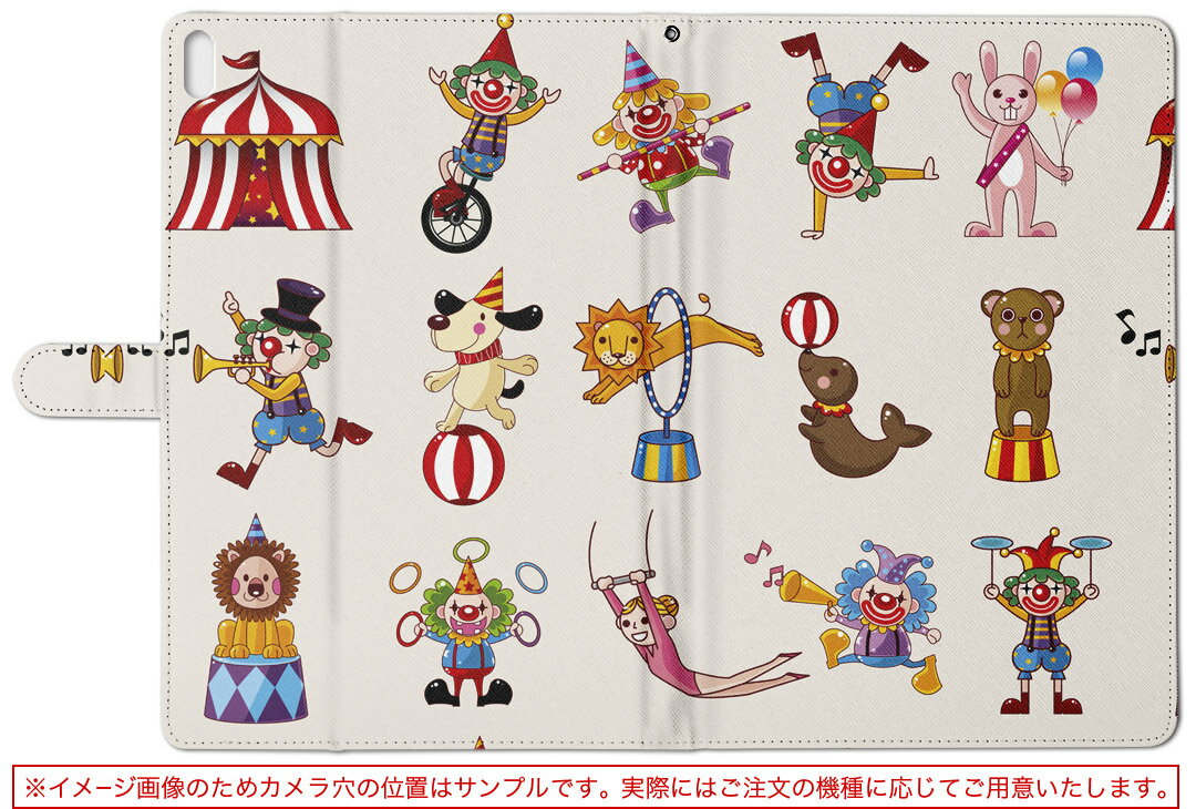 LaVie ラヴィ tabs NEC Sサイズ 手帳型 タブレットケース カバー レザー フリップ ダイアリー 二つ折り 革 ユニーク サーカス イラスト 002494
