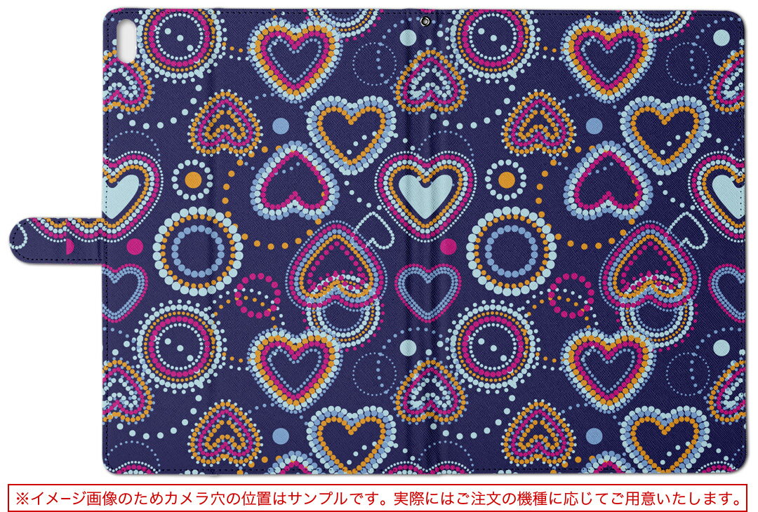 LaVieTab STS508 NEC ラヴィ tabsts508 Mサイズ 手帳型 タブレットケース カバー レザー フリップ ダイアリー 二つ折り 革 ラブリー ハート 模様 紺 004949